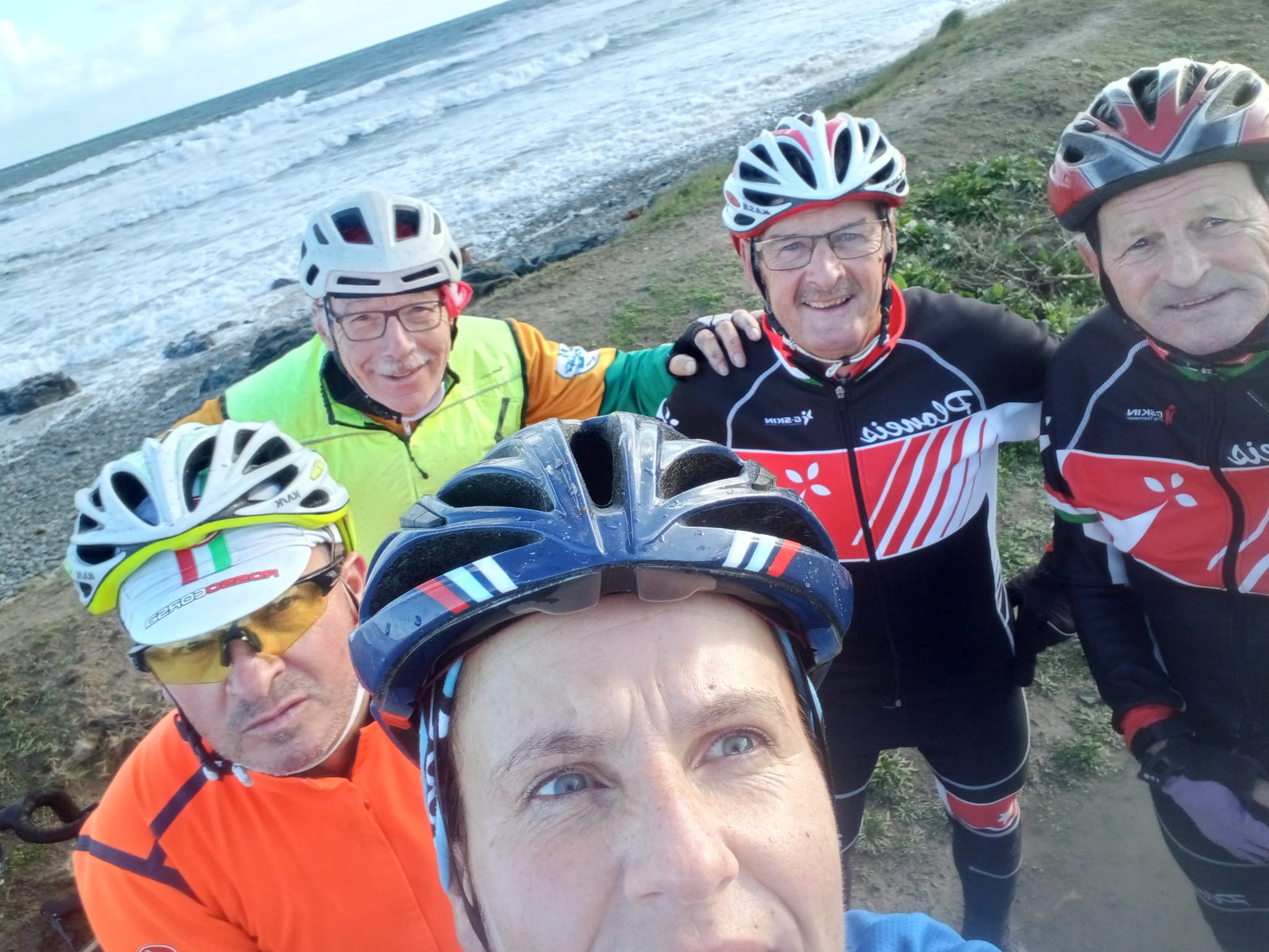 Pause photo du groupe sur la côte entre Plozévet et Penhors..