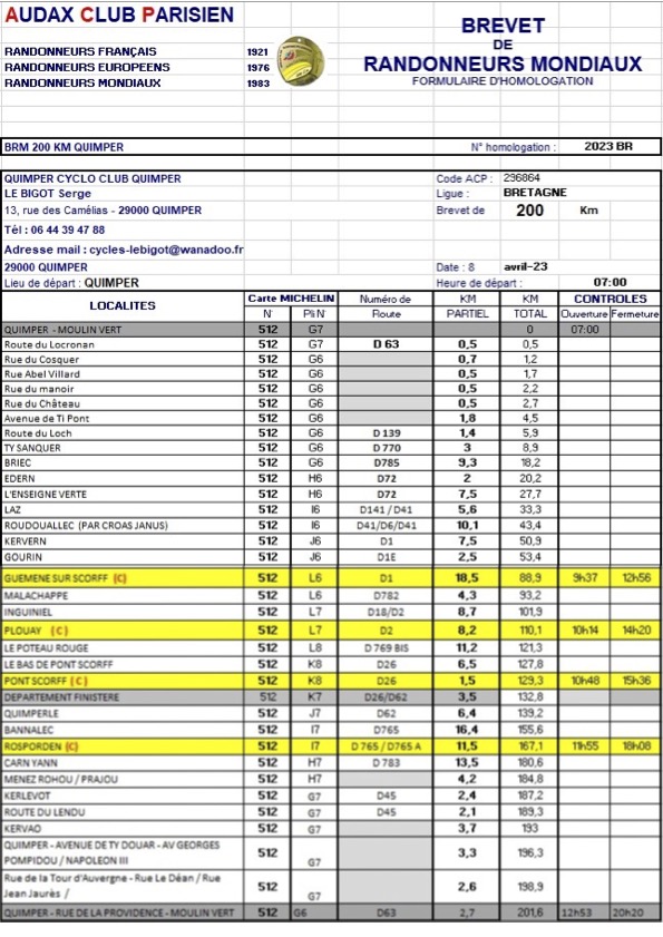 BRM 200 QUIMPER SAMEDI 08 AVRIL 2023