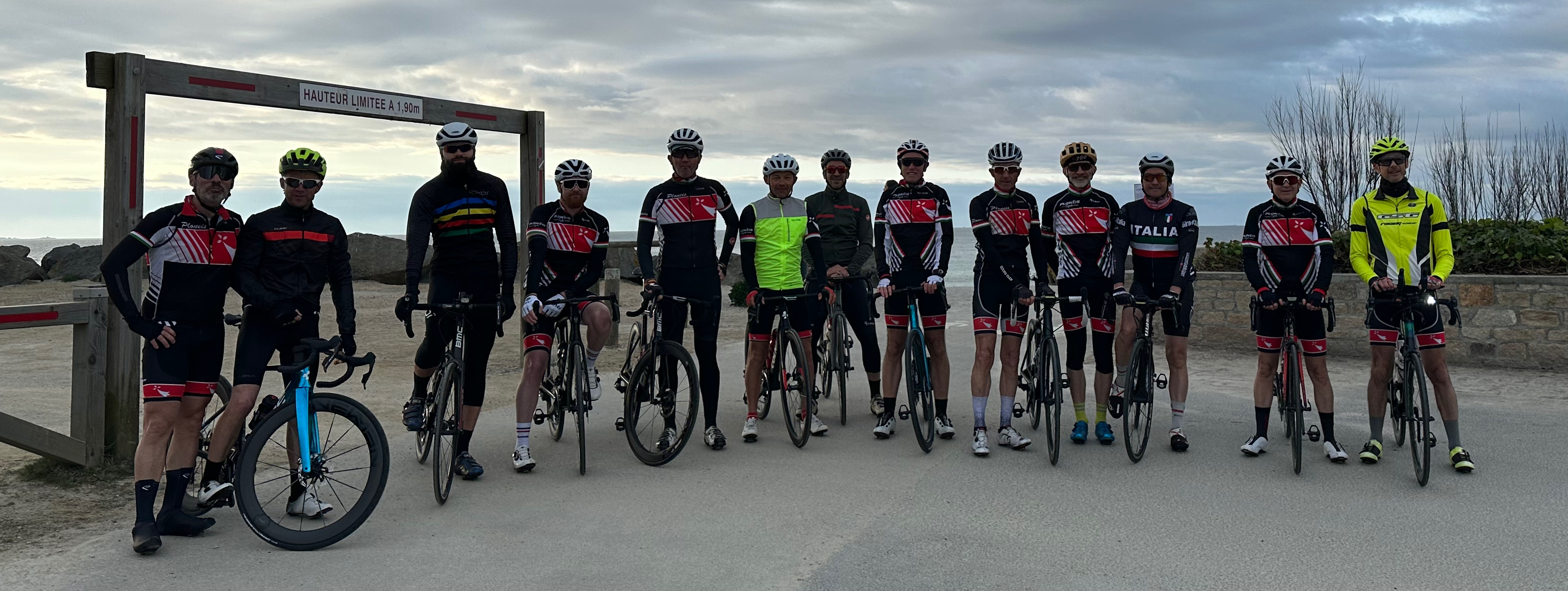 Beau groupe pour un départ à 7h30 ce dimanche, petite pause photo à Mousterlin avant de prendre une bonne averse à la pointe de trévignon qui nous à bien refroidi.