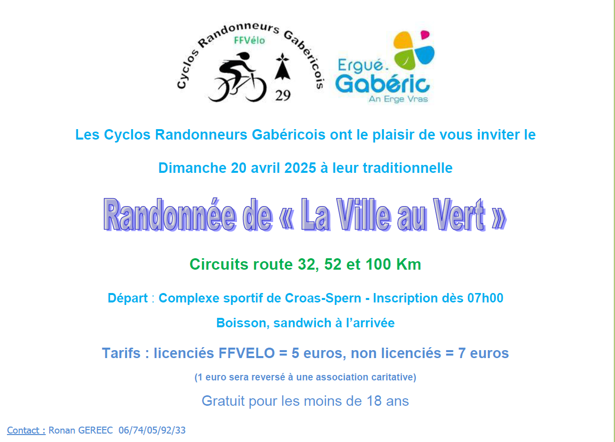 LES CYCLOS RANDONNEURS GABÉRICOIS SONT HEUREUX DE VOUS INVITER À LA RANDONNÉE